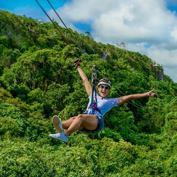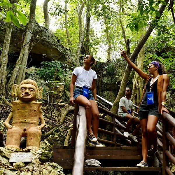Spend your day in our park, and live thrilling and exiting adventures, as well as relaxing a full of good vibes. You can do anything, jump from a cliff with the most spectacular zipline in the Caribbean and enjoy the spectacular views before you land over the lagoon’s waters. Visit all of our different lagoons, both at surface level, and underground, and relax swimming in their waters. Visit the “Hoyo Azul” Cenote, and its crystal-clear waters, or walk in the interior of our caves, and enjoy our cultural route, where you will get to know how the Taino, first inhabitants of the island, used to live, as well as learning about the Spanish conquest, and the African Slaves. Finally, you can enjoy our terrarium and aviary, where you will be able to see endemic animals, like the Rhinoceros Iguana, as well as birds and monkeys, all in their natural environment.